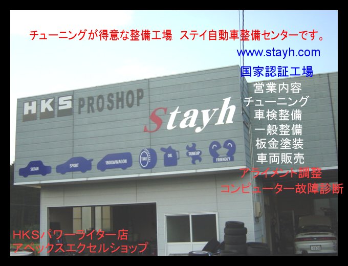 チューニングから車検まで、確実な技術でサポートします。ステイ自動車整備センターです。