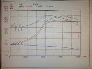 パワーは≒330PSトルク≒48Kで終了です。 インタークーラの冷却を停止し