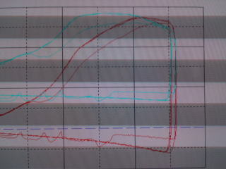 紫のグラフが以前の仕様 赤と緑が今回の仕様。こんなに性能の変化が現れる・