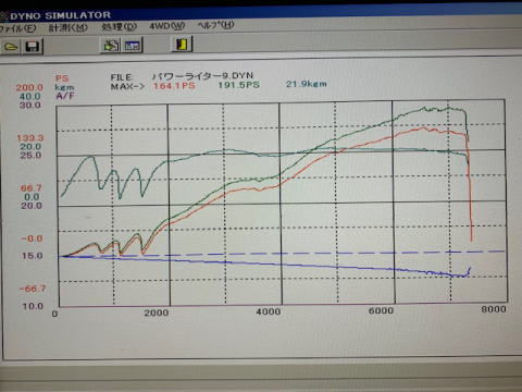 パワー191.5馬力 トルク21Kとなりました。 明日引き取りオーケーです。