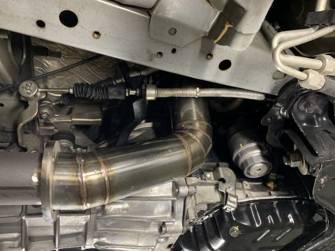 ツインチャージャーのフロントパイプは出来るだけ容量を増やすのが適切。 80φで