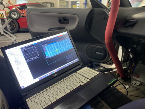 ECUセッティングはエンジンに高ストレスを掛けるので充分健康的なエンジンか見極めつつ作業して行きます。