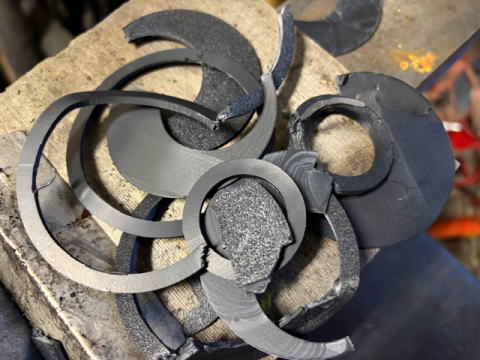 〇導入した3Dプリントで印刷パラメーターを変化させ強度テストを行っています。