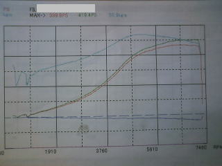 赤グラフがサージタンク装着トルクフルで5000回転でのパワーの落ち込みも軽減されましたが高回転でパワーの垂れが出てきます。